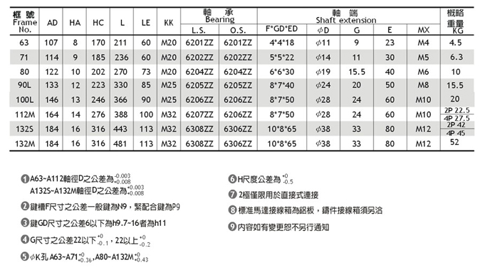 永元铝壳卧式三相马达特点:1采用E级绝缘及高级导电材料,温升低,寿命长,性能优越    2外型轻巧,坚固耐用3优越的设计,噪音低,运转安静  4 启动转矩大,惯性小,运转顺畅,省电效果较佳,马达强劲有力。5特性合乎国家CNS及各项国际认证等标准。6标准IEC公制尺寸,具有互换性,适合各界需要