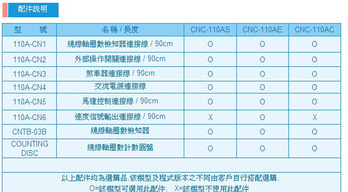 丽绕线控制器CNC-110是台湾原装进口的高品质绕线控制器:音圈绕线,电感器绕线,变压器绕线,马达电子绕线,返驰线圈绕线,多槽式绕线,继电器绕线。 采用最新型高速,高性能单晶片微处理器,操作简易,功能强大。自动正反转绕线,同步排线,多段圈数计数,提供多种软体版本,适用于各类型绕线机台,可针对不同规格机台及使用场合更改安装参数,使用范围广泛.记忆体采用FLASH ROM,关电后资料不流失,免用电池,记忆体容量大,可储存1000段步序绕线资料。