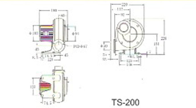 TS200-400鼓风机◆小型·重量·轻高风压◆前顷式叶片设计,体积小、质量轻且较有高压力之产生。低噪音◆新设计,能消除切风时产生之高频及特殊之消音材质,大幅降低噪音比。低震动◆叶片均经过电脑平衡校正与高精密的机械加工,使震动降到最低。◆TS系列抽风机风压范畴:480Pa 900Pa(90 mmH2O)